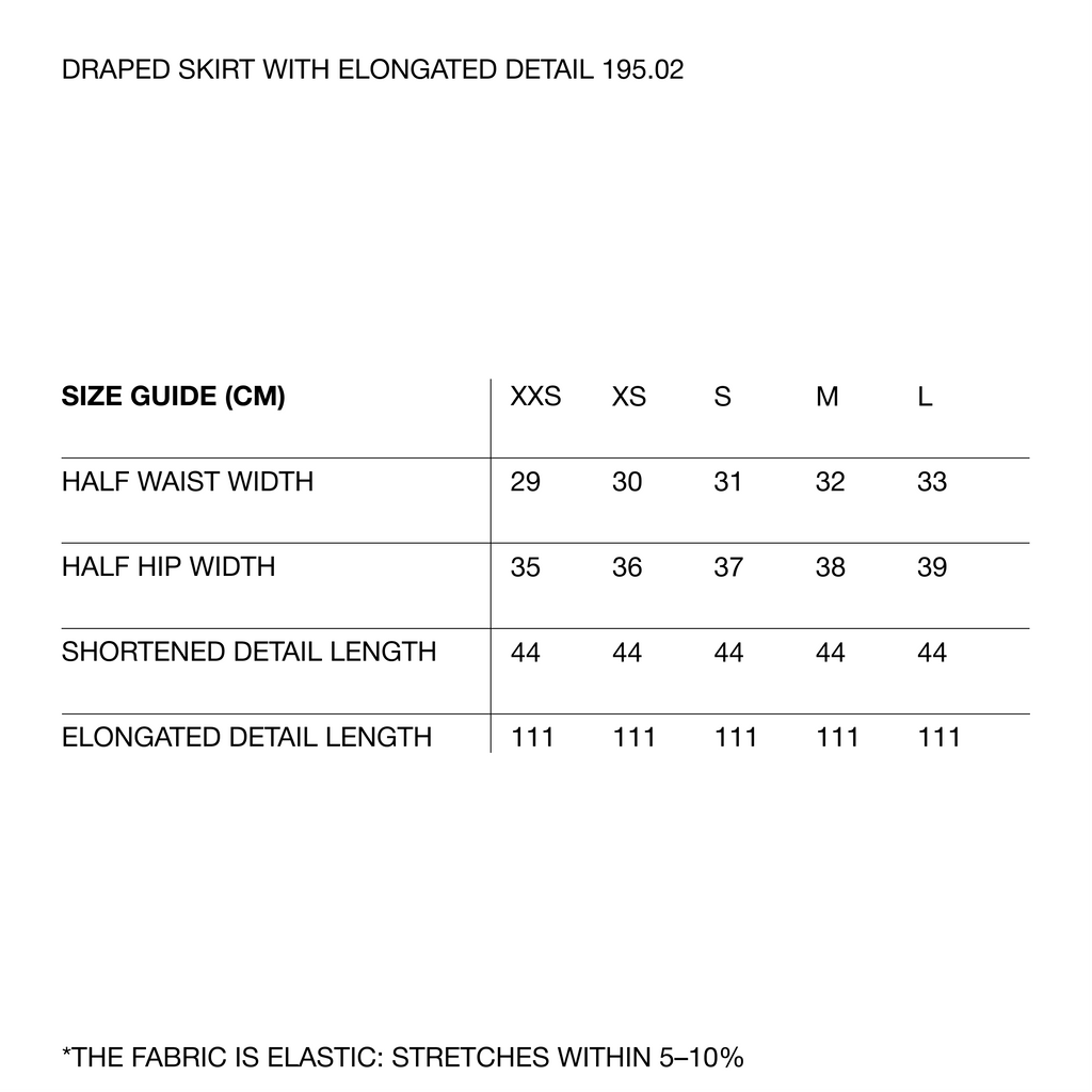 СПІДНИЦЯ З ПОДОВЖЕНОЮ ДЕТАЛЛЮ, ДРАПІРУВАННЯМ НА СТЕГНАХ, ІЗ ЕЛАСТИЧНИМ ПОЯСОМ ТА ВШИТИМИ ШОРТАМИ.