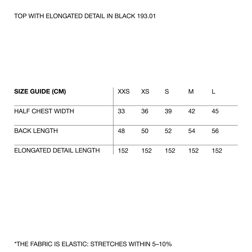 ТОП ІЗ ПОДОВЖЕНОЮ ДЕТАЛЛЮ СПЕРЕДУ, ОКРУГЛИМ ВИРІЗОМ, ДЕКОРАТИВНИМИ ШВАМИ ТА НЕОБРОБЛЕНИМИ КРАЯМИ.